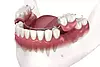 > Grâce à une empreinte réalisée au cabinet, le prothésiste réalise une plaque en résine rose dans laquelle sont intégrées des dents artificielles en résine ou en céramique.